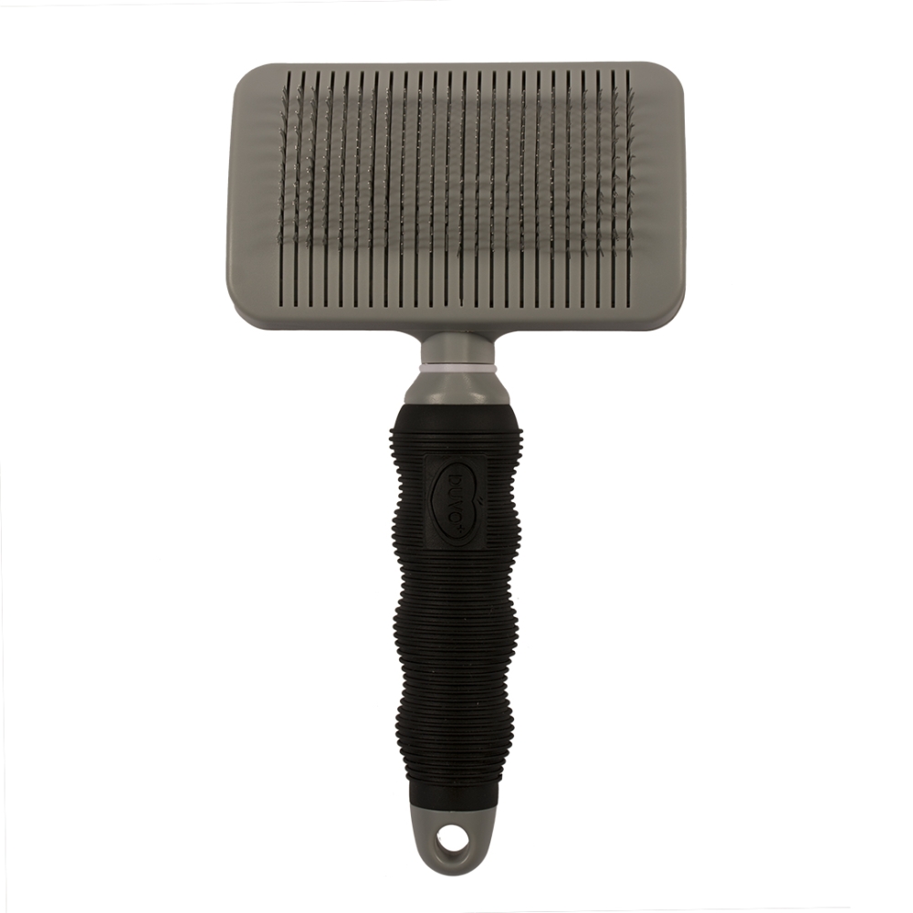 Mit dieser duvoplus-Zupfbürste entfernen Sie überflüssiges Haar und Knoten aus dem Fell. Die sehr feinen gebogenen Zinken helfen Ihnen auch, die dicke Unterwolle vorsichtig ohne Hautreizungen auszudünnen. Äußerst gut geeignet für Katzen und Hunde mit dickem, langem oder krausem Fell. Durch das Selbstreinigungssystem drücken Sie mit einer Daumenbewegung alle Haare einfach durch die Zinken heraus. Wenn Sie Ihren Vierbeiner regelmäßig bürsten, halten Sie das Fell glänzend und gesund und haben darüber hinaus weniger Reinigungsarbeiten zu Hause und im Auto. Der ergonomische Griff liegt angenehm in der Hand und besteht aus langlebigem TPR-Gummi.