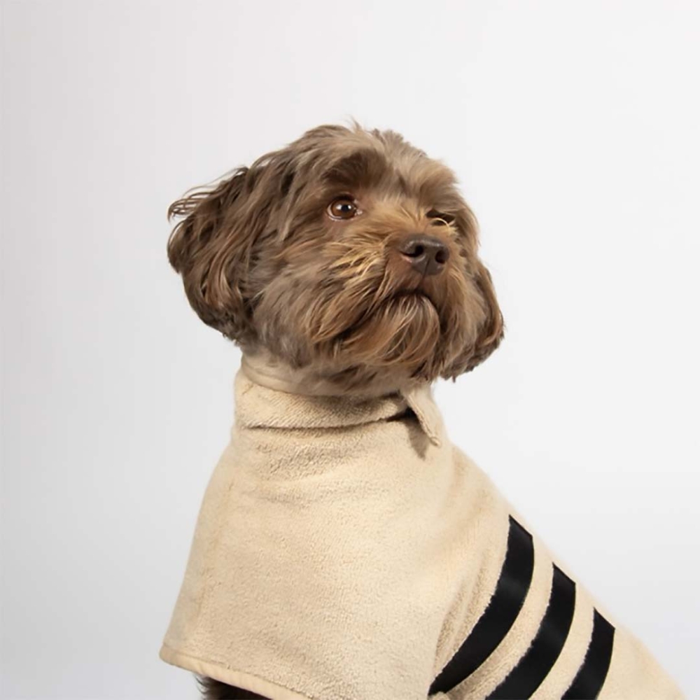 Nach dem Baden, Schwimmen oder einem Spaziergang im Regen hält der Noir Japandi Hundebademantel Ihren Hund warm und trocken. Das weiche, hochsaugfähige Baumwollmaterial nimmt Feuchtigkeit effizient auf und hilft dem Fell, schneller zu trocknen. Der Bademantel bietet eine bequeme Passform mit verstellbarem Anti-Haar-Klettverschluss, wodurch er leicht an- und auszuziehen ist. Erhältlich im stilvollen beigen Japandi-Look.