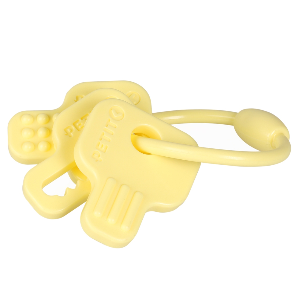 Das Kauspielzeug Cleo ist ideal für junge und/oder ängstliche Hunde. Genau wie bei Babys und Kleinkindern wird das Zahnfleisch von Welpen gereizt, wenn ihnen neue Zähne wachsen oder ein Zahnwechsel stattfindet. Das führt dazu, dass Welpen mehr kauen wollen, um den Schmerz zu lindern. Das Kauen hilft auch, ängstliche oder nervöse Hunde zu beruhigen. Jeder Schlüssel hat eine andere Textur, auf der man kauen kann.