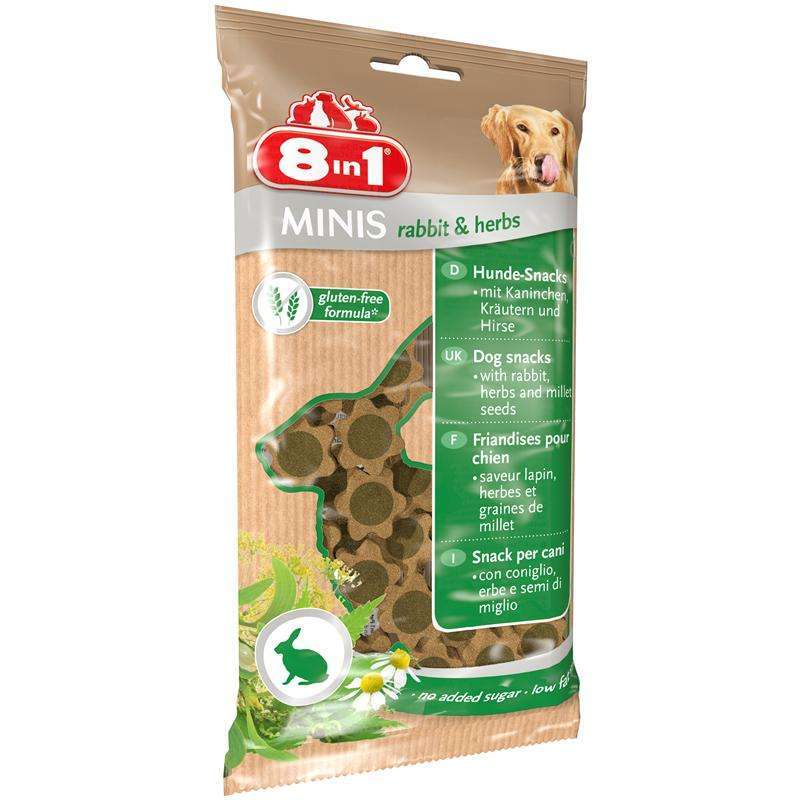 8in1 Minis rabbit & herbs sind leckere Snacks mit Kaninchen und Kräutern. Die schmackhafte Rezeptur mit Hirse enthält kein glutenhaltiges Getreide. Angereichert mit wertvollen Vitaminen, fettarm und ohne Zusatz von Zucker. Zur gesunden Belohnung für Ihren Hund!