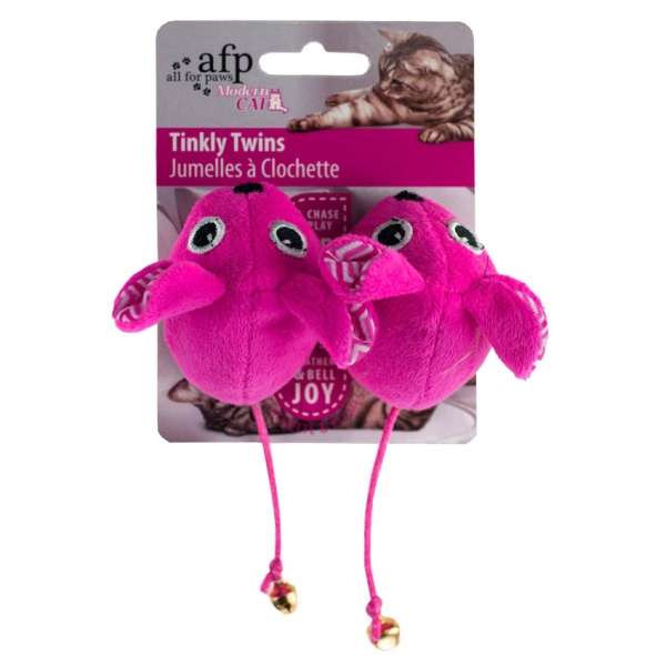 Diese süßen Plüsch-Mäuse kommen gleich im Doppelpack zu Ihnen nach hause. Mit Glöckchen für extra Spielspass.
