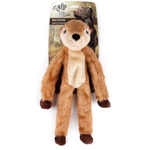 Dieses süße Erdmännchen aus weichem Plüsch ist ideal geeignet für Reiss- und Zerrspiele. In Körper, Armen und Beinen befinden sich stabile Seile, an denen Ihr Hund gerne herumzerren wird. Zusätzlich eignet sich das weiche Kuscheltier auch noch perfekt für Schmusestunden. Im Kopf befindet sich ein Squeeker.