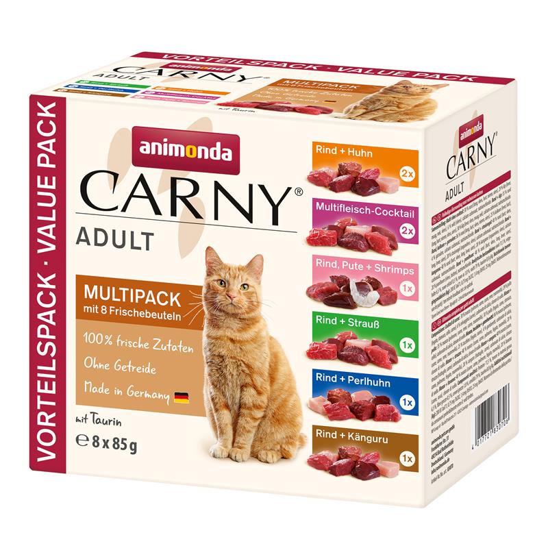 Carny Adult steht für ausgewogene, leckere gesunde Ernährung auf höchstem Niveau für ausgewachsene Katzen von 1-6 Jahren. Die ausgewählten, frischen fleischlichen Rohstoffe garantieren den unvergleichlichen Geschmack, den Katzen überaus schätzen. Carny Adult versorgt die ausgewachsene Katze mit allen lebenswichtigen Nährstoffen.