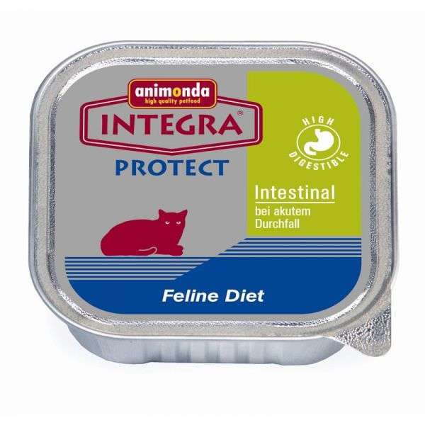 Durchfall und Erbrechen sind die beiden häufigsten Symptome bei Erkrankungen des Magen-Darm-Traktes. Probleme im Verdauungstrakt der Katzen gehören zu den wichtigsten Gründen für einen Besuch einer tierärztlichen Praxis. Als Ursachen kommen eine Vielzahl von Faktoren in Frage. Neben Infektionen, dem Befall mit Parasiten, allergischen Reaktionen, Fütterungsfehlern oder Störungen der Verdauungsorgane müssen auch psychische Belastungen wie z.B. die Trennungsangst und Stress berücksichtigt werden. Die diätetische Behandlung von Durchfallerkrankungen bei Katzen besteht vorrangig im Angebot mengenmäßig kleiner, aber hochverdaulicher Mahlzeiten, die verteilt über den Tag angeboten werden. Für eine angemessene Ernährung der Patienten eignet sich INTEGRA® PROTECT Intestinal besonders. Sie stellt hoch verdauliche Eiweiße, Fette und Kohlenhydrate sowie gezielt dosierte Gehalte an Elektrolyten, vor allem Natrium und Kalium, zur Verfügung. Es werden alle wichtigen Nährstoffe zur Regeneration des Darmes und zur Milderung von Entzündungssymptomen bereitgestellt, so dass die Wiederherstellung der Darmflora gefördert und die Darmgesundheit unterstützt wird.