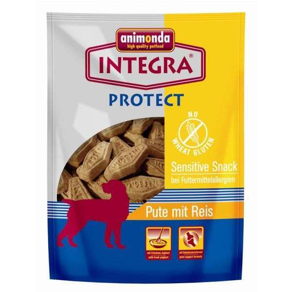 Auch ernährungssensible Hunde brauchen auf einen herzhaften Snack nicht zu verzichten. Denn es gibt INTEGRA® Sensitive Snack, den knackig-hart gebackenen Hunde-Snack, der nur ganz besonders ausgewählte Rohstoffe enthält wie Puten- bzw. Straußenfleisch (jeweils nur eine Eiweißquelle) und reine Getreidemehle. Damit ist dieser herzhafte Snack speziell abgestimmt auf die Erfordernisse ernährungssensibler Tiere. Und weil die INTEGRA® Sensitive Snacks so knackig-hart gebacken sind , sind sie auch noch gesund für die Zähne.