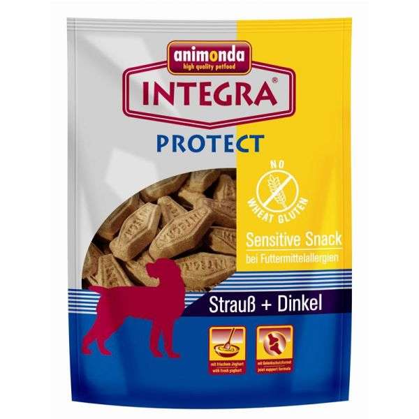 Auch ernährungssensible Hunde brauchen auf einen herzhaften Snack nicht zu verzichten. Denn es gibt INTEGRA® Sensitive Snack, den knackig-hart gebackenen Hunde-Snack, der nur ganz besonders ausgewählte Rohstoffe enthält wie Puten- bzw. Straußenfleisch (jeweils nur eine Eiweißquelle) und reine Getreidemehle. Damit ist dieser herzhafte Snack speziell abgestimmt auf die Erfordernisse ernährungssensibler Tiere. Und weil die INTEGRA® Sensitive Snacks so knackig-hart gebacken sind , sind sie auch noch gesund für die Zähne.
