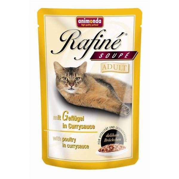 Mit Rafine® Soupe mit Geflügel in Currysauce steht Ihrem geliebten Stubentiger ein völlig neues Geschmackserlebnis zur Verfügung