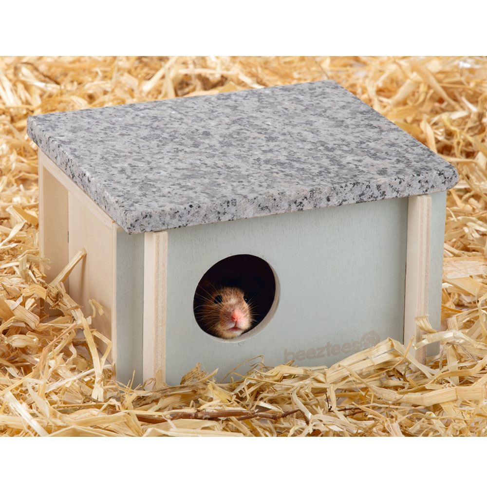 Ein bisschen Abkühlung fur Nager an heißen Sommertagen bietet das Beeztees Kühlhaus Cico. Das Holzhaus besitzt ein Dach aus Granit Kühlstein. Der Stein bleibt auch bei Hitze kühl und hält so auch das Innere des Häuschens angenehm kühl.