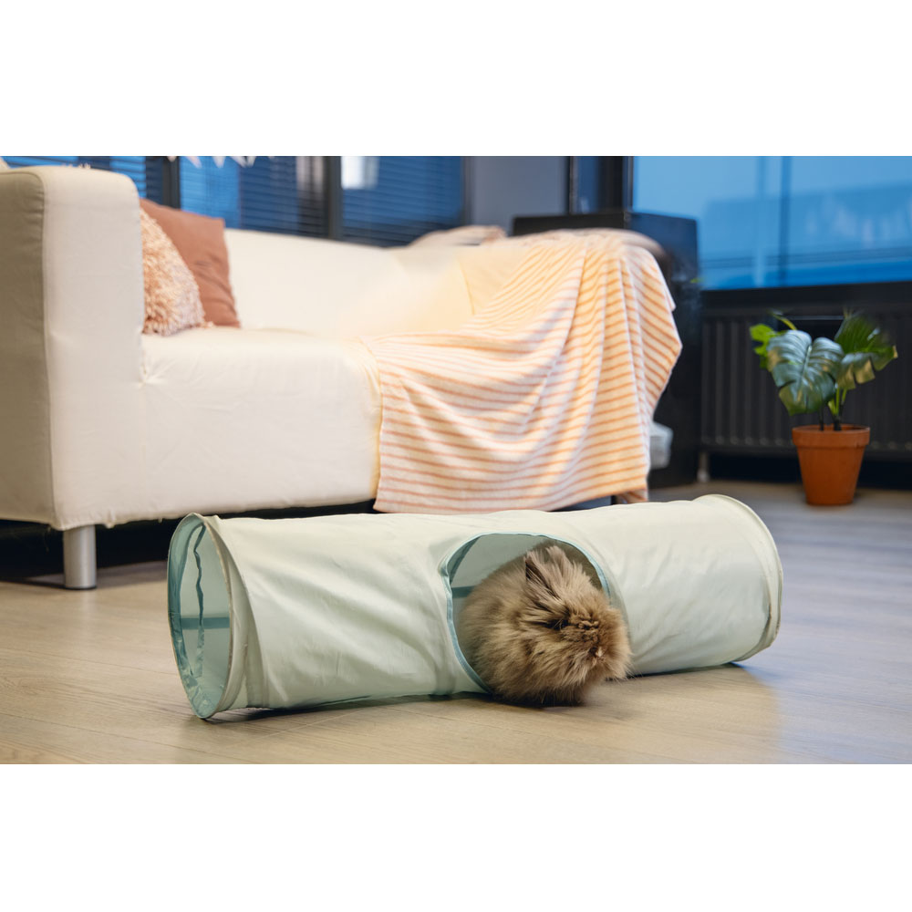 Der Beeztees Tunnel Ravena ist speziell für Nager designt, aus Nylon gefertigt und eignet sich mit seiner Länge von 70 cm in erster Linie für große Käfige oder zum Aufstellen in der Wohnung. Ideal für Nager zum Hineinkriechen, sich Verstecken oder Spielen.