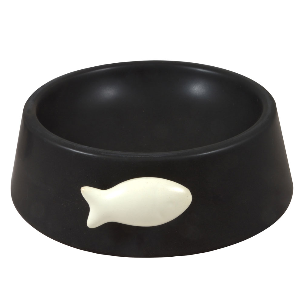 Schöner Keramiknapf mit Fischmotiv in zeitlosem Schwarz/Weiß.