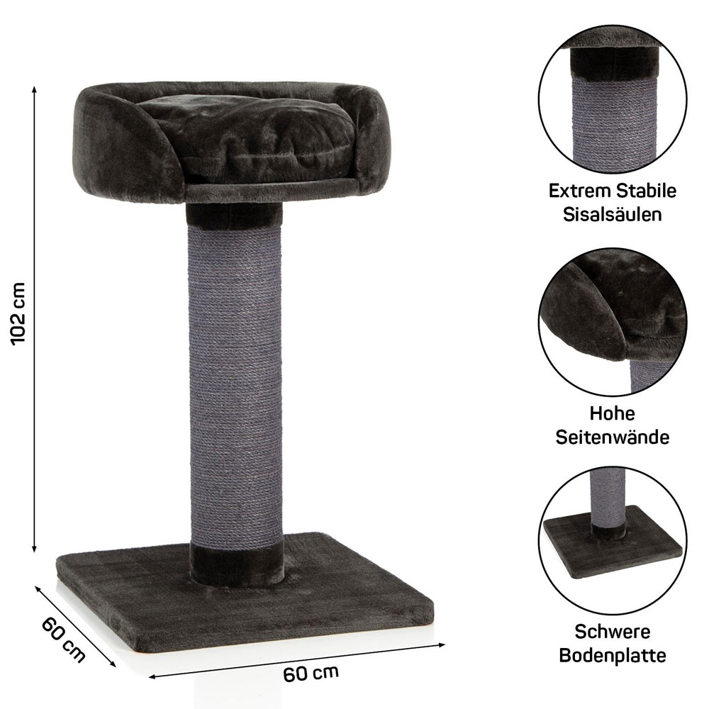 An der Spitze befindet sich ein kuschel weiches Bett mit passendem Kissen und erhöhten Seitenwänden. Das Bett ist übrigens auch groß genug für zwei. Die original CanadianCat® - Design-Kratzmöbel vereinen Funktionalität, Design und Qualität in einem Produkt.