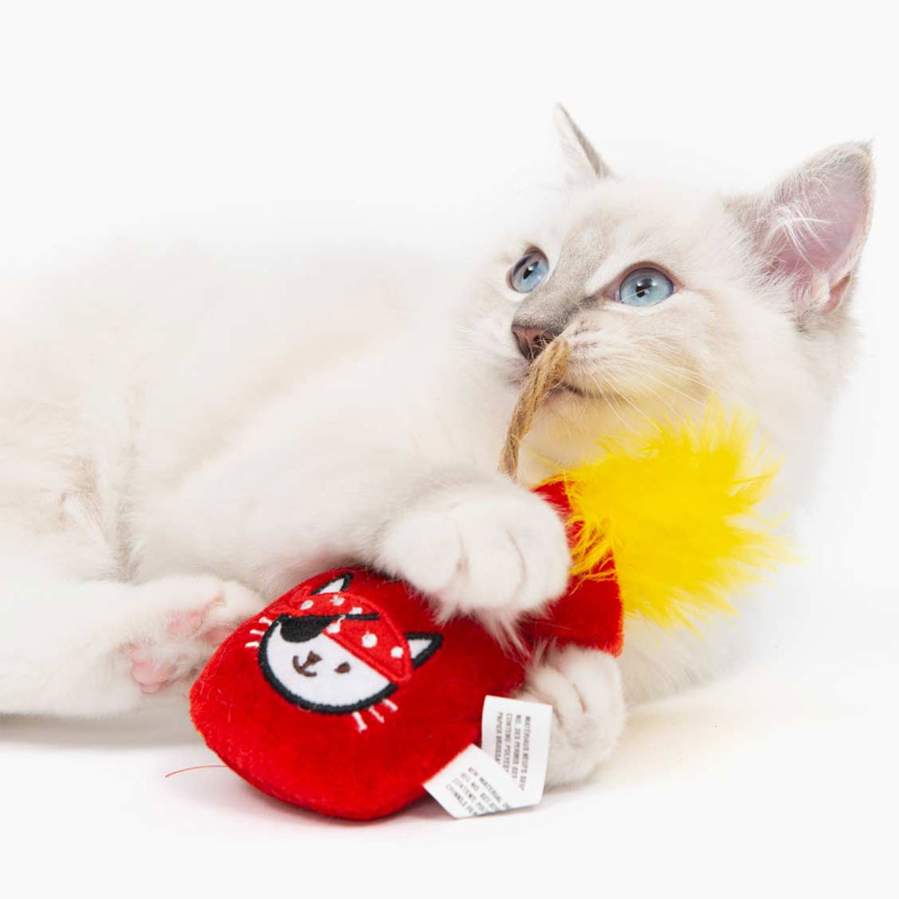 Beobachten Sie, wie Ihre Katze einen Beutel mit Gold jagt oder eine Granate anzündet wie ein echter Pirat! Jedes dieser Spielzeuge ist mit verlockender Katzenminze gefüllt.