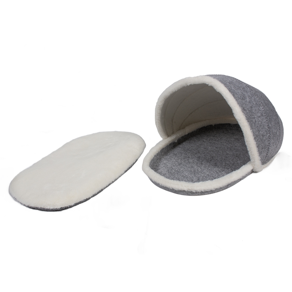 Das duvoplus-Katzenhaus bietet einen komfortablen und kuscheligen Ruheplatz für Ihre Katze. Außerdem ist er ein schöner Blickfang in jedem Interieur und bietet eine sichere Ablagefläche. Das Katzenhaus ist aus Polyesterfilz gefertigt und innen mit weichem Plüsch gepolstert. Dieses Haus ist faltbar und lässt sich mit Hilfe der Druckknöpfe leicht zusammenbauen.