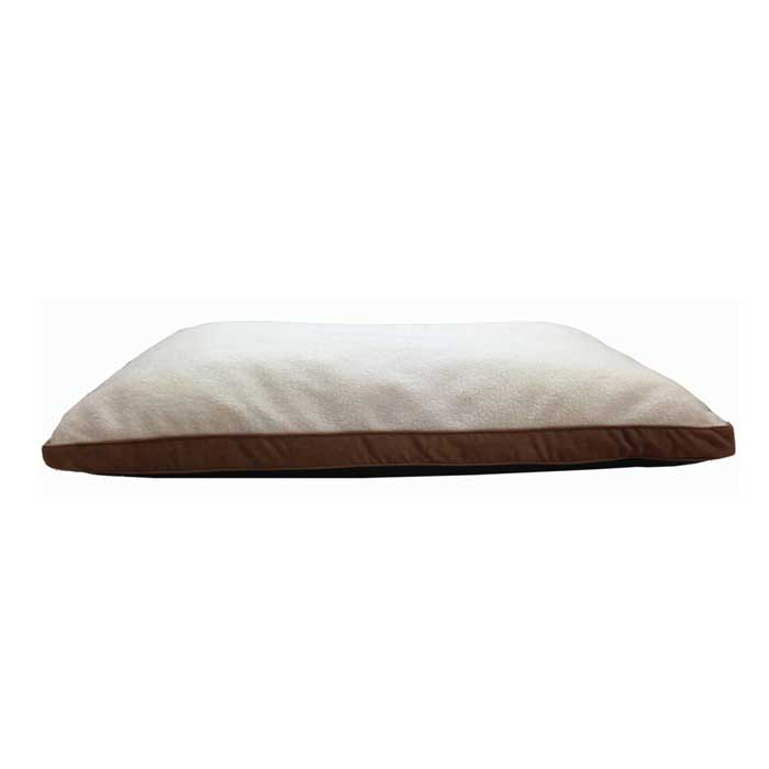Die weiche Liegefläche aus Lammfellimitat eignet sich perfekt zum Ankuscheln und lädt auf Anhieb zum ausgiebigen Nickerchen ein. Der Polyesterbezug ist an den Seiten in schicker brauner Veloursleder-Optik gehalten und an der Unterseite mit Anti-Rutsch-Noppen bestückt. Der Bezug lässt sich per Reißverschluss abnehmen und bei 30° C reinigen. Die Füllung besteht aus Polyestervlies.