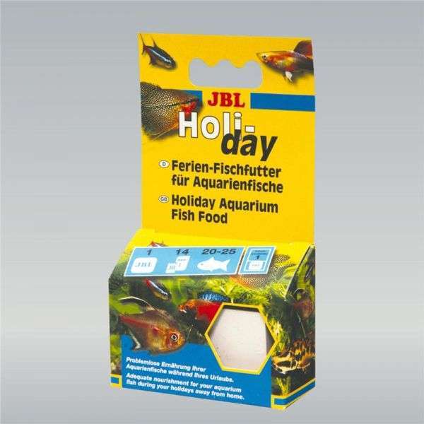 JBL Holiday Ferienfischfutterdient zur problemlosen Ernaehrung Ihrer Aquarienfische waehrend des Urlaubs. Es enthaelt alle Bestandteile, die fuer eine gesunde Ernaehrung der Fische wichtig sind: Getreide, Fisch und Fischnebenerzeugnisse, pflanzliche Nebenerzeugnisse, Hefen, Algen, sowie tierische Nebenerzeugnisse. Alleinfuttergefaerbt mit EWG-Zusatzstoffen.