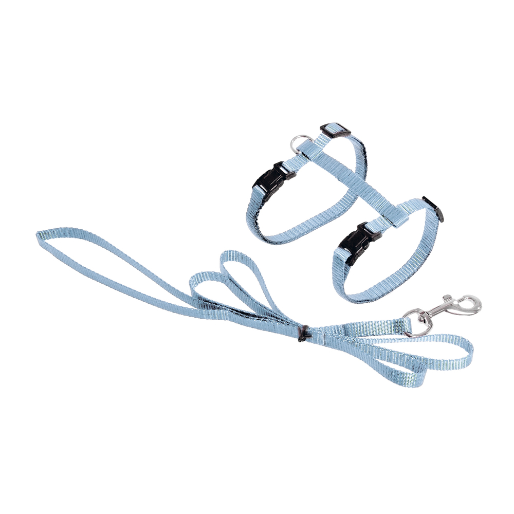 Katzengeschirr und Leine in vielen aktuellen Farben. Das Geschirr bietet Ihrer Katze einen angenehmen Tragekomfort. Es kann verstellt werden bis es bequem sitzt und nicht mehr verrutscht. Geschirr und Leine sind aus weichem Nylonmaterial, mit Klickverschlüssen und verchromten Beschlägen. Die Leine hat eine Länge von 110 cm. Die Breite des Nylons beträgt 10 mm.