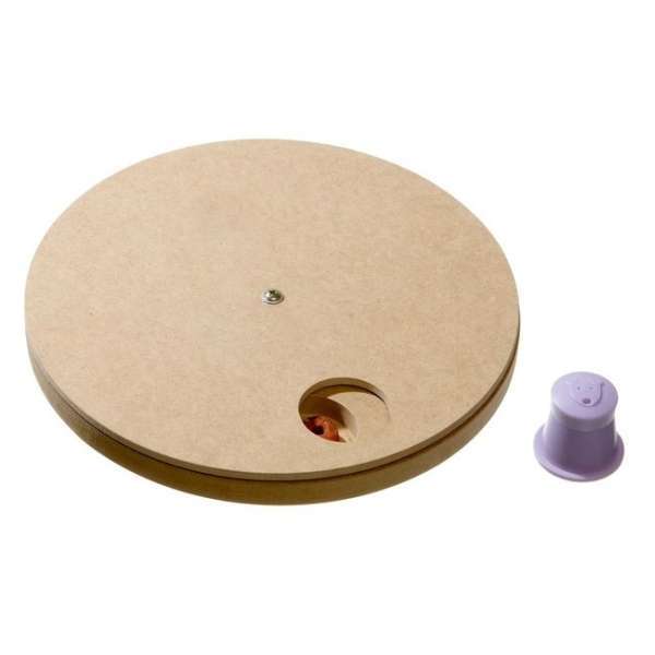 Für Einsteiger! Ein Motivations- und Denkspiel speziell für Hunde. Bei diesem Spiel können Snacks in beliebige Öffnungen eingelegt werden. Durch die obere drehbare Scheibe, welche nur eine Öffnung besitzt, werden die Snacks verdeckt und erst durch Drehen der Scheibe kommt der Hund an seine versteckten Leckerlies. Zusätzlich gibt es noch ein Hütchen mit Duftlöchern, welches der Hund entfernen muss bevor die obere Scheibe gedreht werden kann. Mit Anti-Rutsch-Stopper.