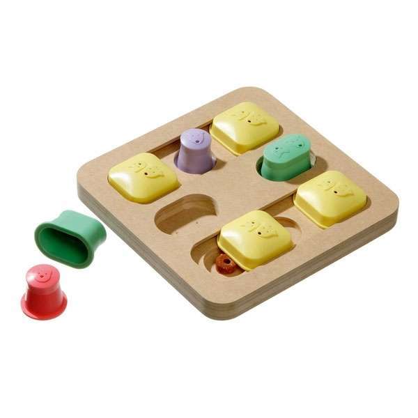 Für Fortgeschrittene! Bei diesem Spiel werden Snacks in beliebige Vertiefungen gelegt, welche dann mit Schiebehütchen oder Hütchen zum Anheben verdeckt werden. Durch Schieben mit der Pfote oder Schnauze oder durch Heben werden die Snacks wieder zugänglich. Verschiedene Schwierigkeitsgrade sind möglich, z. B. dass der Hund erst an sein Leckerchen kommt, nachdem er ein Hütchen angehoben und ein weiteres verschoben hat. Die Cups sind in verschiedenen Farben und Formen und jeweils mit Duftlöchern. Hygienisch zu reinigen, mit Anti-Rutsch-Stopper.