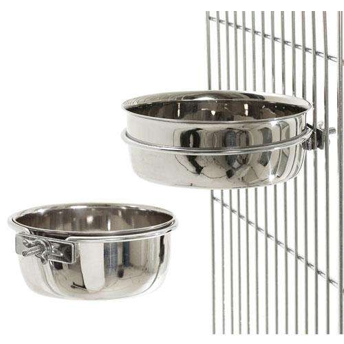 Edelstahlnapf aus rostfreiem Edelstahl mit Schraubbefestigung zum Festschrauben am Käfig- oder Volierengitter.