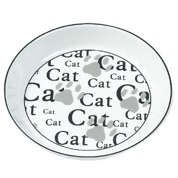 Schöner flacher Katzennapf aus hochwertiger Keramik mit Cat-Schriftzug.