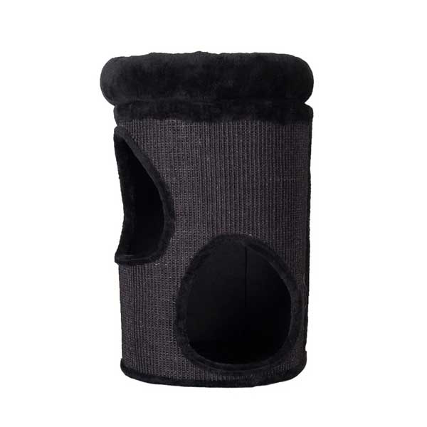 Die Kratztonne Silo vereint Kratzbaum, Spielplatz und Ruheort auf kleinstem Raum. Die Kratztonne ist außen mit Sisal bezogen, besitzt 2 Etagen mit jeweils einem Eingang und ist oben mit einem kuscheligen Bettchen bestückt.