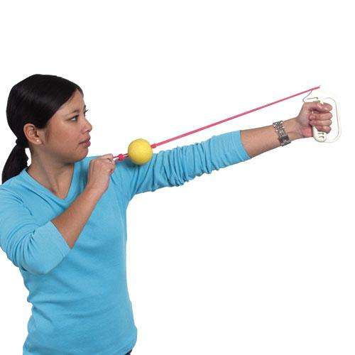 Der praktische Handgriff verstärkt die Flugweite um ein Vielfaches ohne Kraftaufwand.