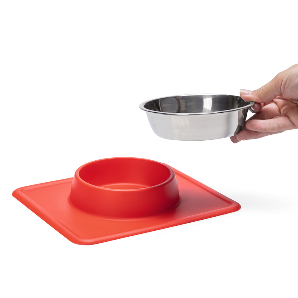 Der Hundefutternapf Dex von Karlie ist ideal, um Ihren Hund mit frischem Futter oder Wasser zu versorgen. Dieser Futternapf ist mit einem abnehmbaren Edelstahlnapf ausgestattet. Der Edelstahl sorgt dafür, dass Essensgerüche nicht aufgenommen werden. Zudem kann die separate Edelstahlschüssel in der Spülmaschine gereinigt werden. Der Rand von Dex ist aus rutschfestem Silikon, damit die Schale an Ort und Stelle bleibt. Außerdem sammelt die Silikonmatte verschüttetes Wasser und/oder Futter auf.