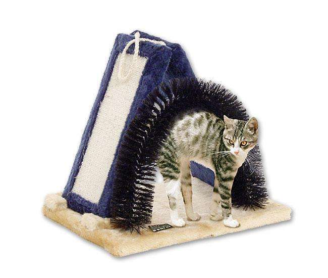 Der Kratzbaum ist besonders robust verarbeitet. Die Rundbürste entfernt beim Hindurchgehen der Katze lose Haare.