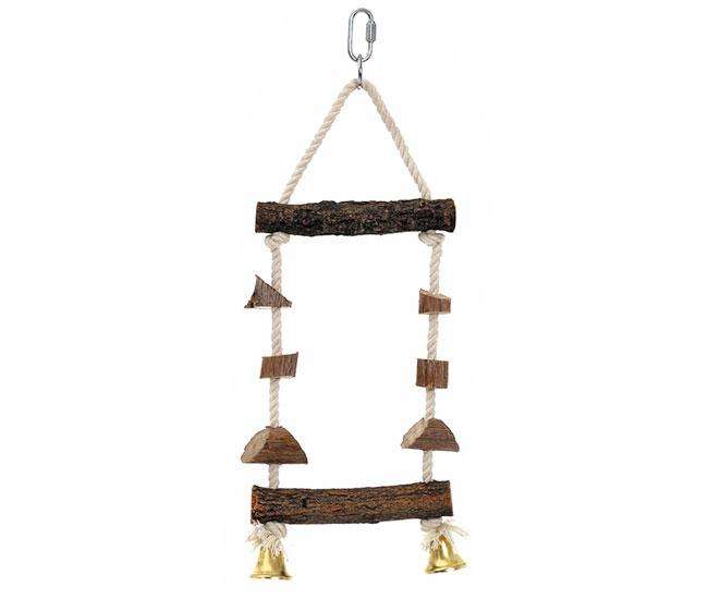 Schaukel aus Baumwolle und Natorholz für Wellensittiche und ähnlich große Vögel. Mit 2 Glöckchen und Haken zur einfachen Befestigung am Käfiggitter.