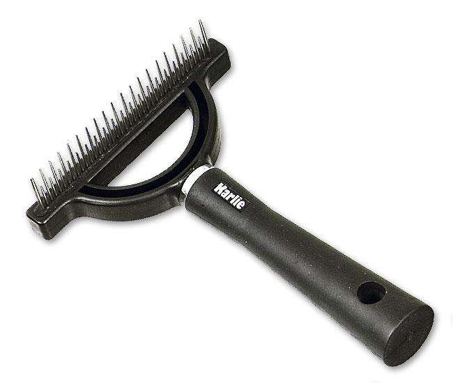 Unterwoll-Entwirrungsharke mit langen und kurzen rotierenden Stiften für Hunde mit Unterwollfell aus der Karlie Perfect Care Pflegeserie.