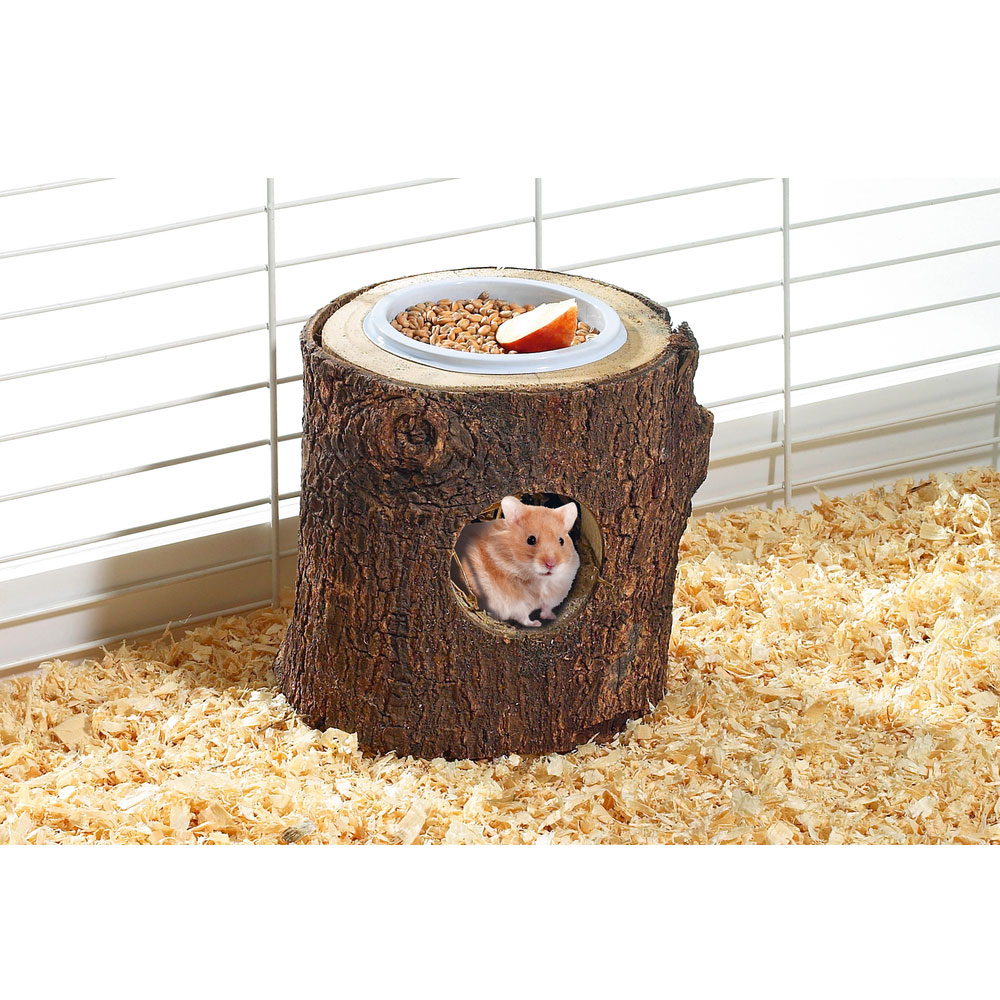 Das Nagerhaus mit Futternapf von Karlie bietet doppelten Spaß für Ihren kleinen Nager. Es ist besonders gut für Hamster oder kleine Mäuse geeignet. Da das Haus aus einem ausgehöhlten Holzstamm besteht, verleiht es dem Hamsterkäfig ein schönes natürliches Aussehen. Der Futternapf auf der Oberseite ist aus Keramik gefertigt. Nach einer leckeren Mahlzeit kann sich Ihr kleiner Nager so für ein gemütliches Nickerchen in sein Zuhause zurückziehen.