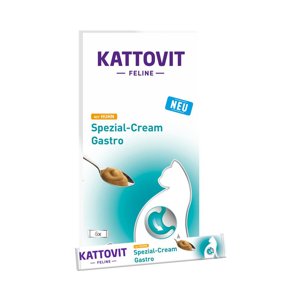 Kattovit Gastro Spezial-Cream mit Huhn Gastro-Snack mit erhöhtem Elektrolytgehalt. Fettarm und leicht verdaulich.
