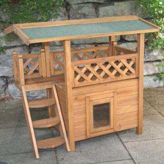 Nach einer anstrengenden Mäusejagd gibt es nichts Entspannenderes, als sich in die stilvolle Katzen-Lodge zurückzuziehen. Hier ist Ihr Samtpfötchen vor Regen und Kälte geschützt. Die Terrasse ist nicht nur ein brillanter Beobachtungsplatz, das große wetterfeste Bitumendach bietet erstklassigen Sonnenschutz an heißen Tagen.