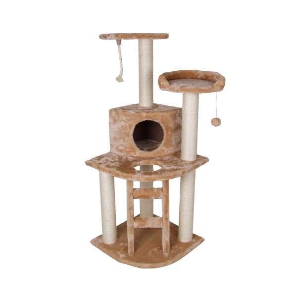 Die Höhle ist ideal zum Zurückziehen geeignet und mit den zwei zusätzlichen gemütlichen Liegeflächen hat Ihre Katze die freie Auswahl, wo das Nickerchen heute stattfinden soll. Außerdem ist eine Leiter und ein Spielball und ein Spielseil vorhanden.