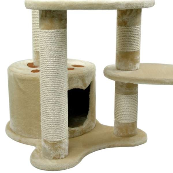 Der Kratzbaum Tapsi hebt sich vorallem durch seine ungewöhlichen Plattenformen, sowie den Höhleneingang in Form eines Katzenkopfes von den meisten anderen Kratzbäumen ab. Mit seinen Gesamtmaßen von ca. 59 x 66 x 74,5 cm (BxTxH, wobei Breite und Tiefe variieren, je nachdem in welche Richtung man die ovale Platte dreht) ist er relativ platzsparend, bietet aber trotzdem alles, was ein Kratzbaum haben sollte. So ist für gemütliche Schlafplätze, eine ruhige Rückzugsmöglichkeit, Kratzgelegenheiten und sogar Spielspaß gesorgt!