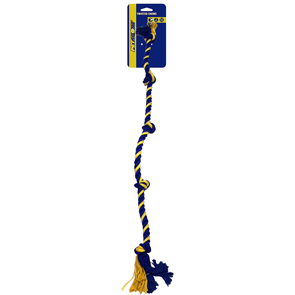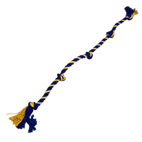 Geflochtenes Seil gefertigt aus starker, "1st class" Baumwolle. Es gibt viele Seilspielzeuge für Hunde auf dem Markt, jedoch wenige so gut wie dieses! Die blau/gelbe Farbe kann Ihr Hund z. B. auf Rasen besonders gut erkennen. Mit gigantischen 182 cm ist dieses Seil das ideale Zerrspielzeug für mehrere Hunde.