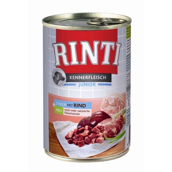 Rinti Kennerfleisch Junior mit Rind ist speziell auf die Bedürfnisse und den erhöhten Nährstoffbedarf jüngerer Hunde abgestimmt. Es ist hochbekömmlich, leicht verdaulich und enthält alle wertvollen Zutaten für eine gesunde Entwicklung, starke Knochen und Gelenke.