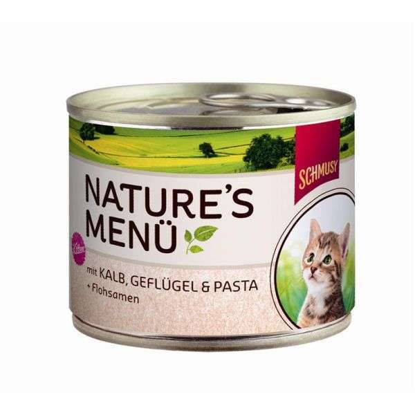 Schmusy Natures Menü - Kitten - mit Kalb, Geflügel, Pasta & Flohsamen