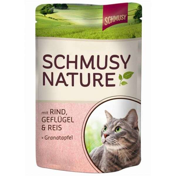 NATURES MENÜ von Schmusy ist reich an natürlichen Fleischstücken.