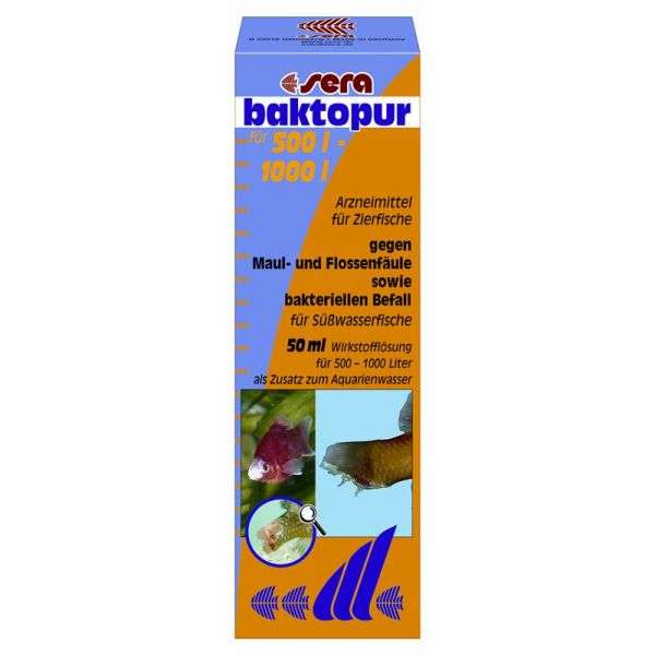 sera baktopur bekämpft bakterielle Erkrankungen wie Maul- und Flossenfäule und grauweiße bzw. wattebauschartige Stellen auf Haut und Flossen bei Süßwasserfischen im Aquarium und Gartenteich zuverlässig.