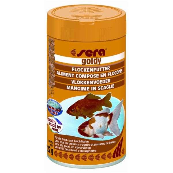 sera goldy enthält Spirulina und Weizenkeimmehl und ist deshalb ideal für Kaltwasserfische im Aquarium oder im Teich.