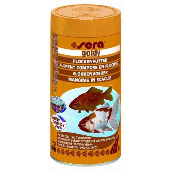 sera goldy enthält Spirulina und Weizenkeimmehl und ist deshalb ideal für Kaltwasserfische im Aquarium oder im Teich.