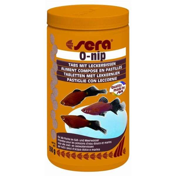 sera O-nip ist ein begehrtes Tablettenfutter für alle Süß- und Meerwasserfische und viele Niedere Tiere. Es besteht zu je 50 % aus hochwertigem Flockenfutter und gefriervakuumgetrockneten Futtertieren (FD). Heften Sie sera O-nip mit leichtem Fingerdruck von innen an die Aquariumscheibe. sera O-nip ist auch ein hochwertiges Futter für Welse und Schmerlen.