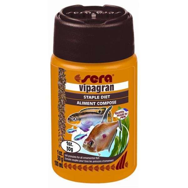 Besonders leicht und bekömmlich ist das neuartige, schwimmfähige Granulatfutter sera vipagran.