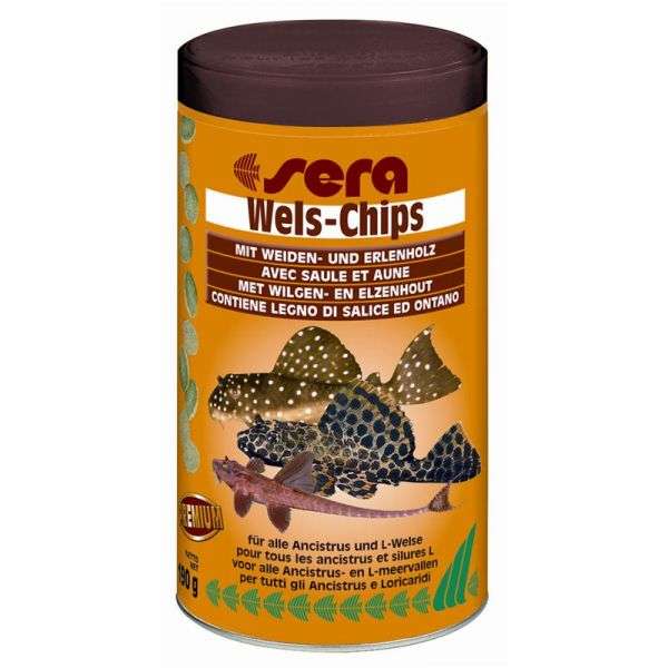 speziell für diese prächtigen Aquarienfische gibt es nun sera Wels-Chips mit Weidenrinden- und Erlenholz-Anteilen.