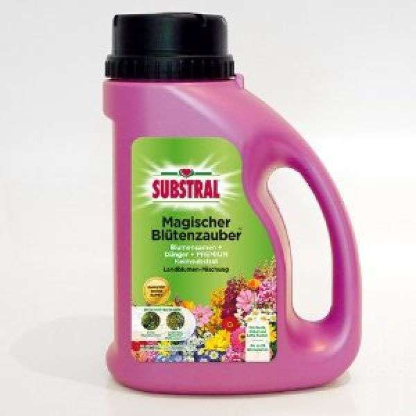 SUBSTRAL Magischer Blütenzauber ist eine Mischung aus Premium Keimsubstrat, Substral Osmocote Langzeitdünger und hochwertigen Blumensamen. Diese drei Komponenten sind in jedem Kanister im optimalen Verhältnis gemixt. Das spezielle Keimsubstrat nimmt Regen- und Gießwasser wie ein Schwamm auf. Es hält die Samen nach dem Ausstreuen feucht und schützt sie vor Austrocknung. Dies ist der beste Garant dafür, dass die Saat auch wirklich aufläuft. Der enthaltene Osmocote Langzeitdünger versorgt die jungen Keimlinge anschließend mit allen notwendigen Nährstoffen. So können die Jungpflanzen kräftig wachsen und noch im Sommer des Aussaatjahres blühen. Die hochwertige, jeweils unterschiedliche Saatgutmischung verwandelt alle Gartenbeete über Monate in ein zauberhaftes Blütenmeer.