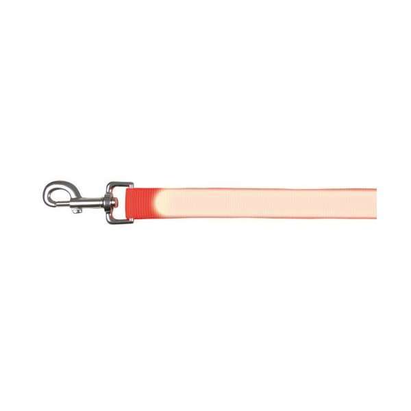 Die Sichtweite beträgt bis zu 400 m. Die Leine wird inklusive Batterie geliefert (für ca. 200 Stunden Blinklicht/ca. 100 Stunden Dauerlicht). Die Leine ist spritzwassergeschützt und stufenlos verstellbar.