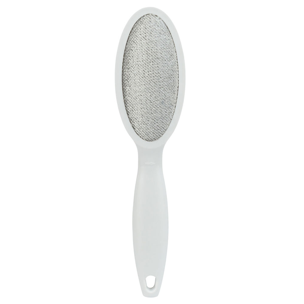 Die beidseitige Fusselbürste reinigt Polster, Textilien und andere Stoffe schon beim einfachen Überbürsten von Haaren und Fusseln.