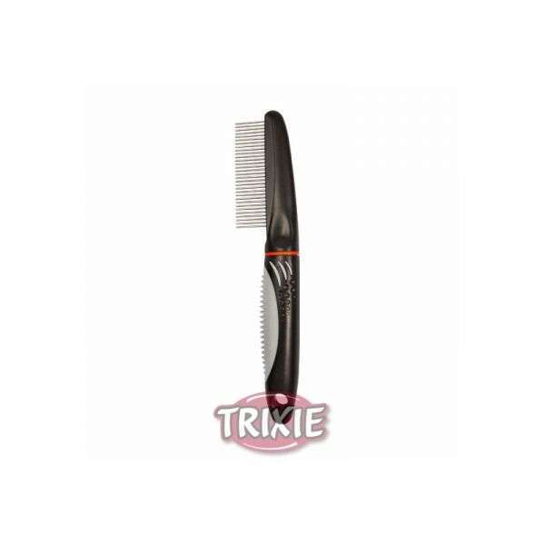 Dieser Kamm des Herstellers Trixie hat einen mittleren Zinkenabstand.Der Kamm hat einen Kunststoffgriff mit rutschfester Gummieinlage und besitzt abgerundete Zinken zur schonenden Fellpflege. Er dient der besonderen Pflege des Deckhaars und der Unterwolle.