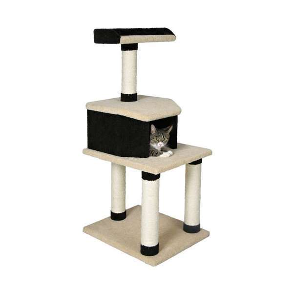 Der Trixie Kratzbaum Manolo ist von außen und innen mit Teppichstoff bezogen, was ihn besonders robust macht. Die Stämme haben einen Rand aus Teppich und sind mit Natursisal umwickelt. So bieten Sie Ihrer Katze jede Menge Möglichkeit zum Krallenschärfen.